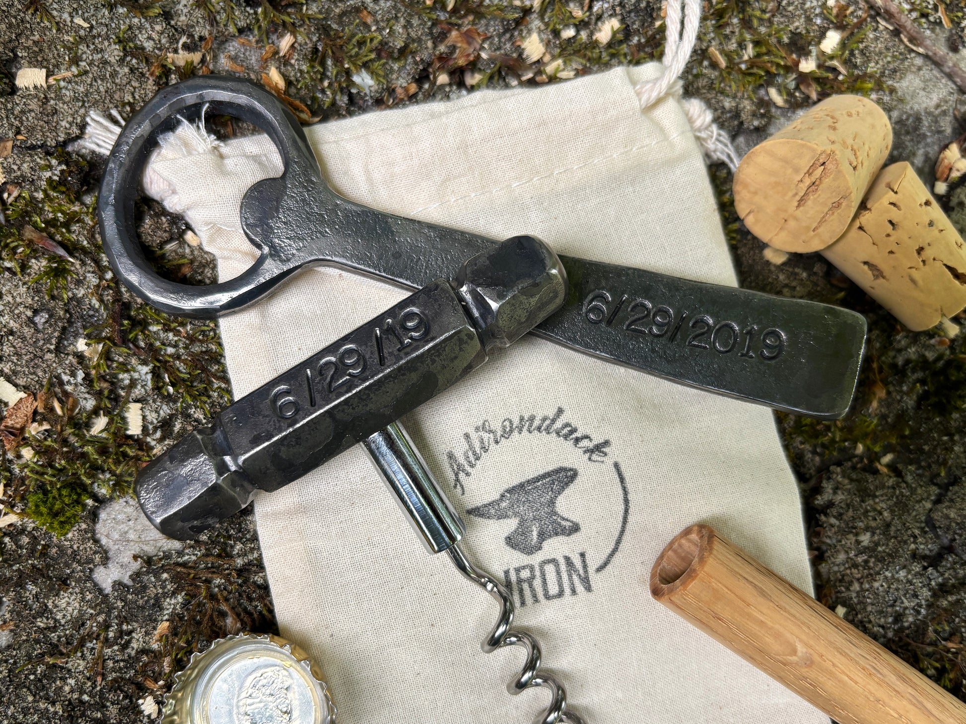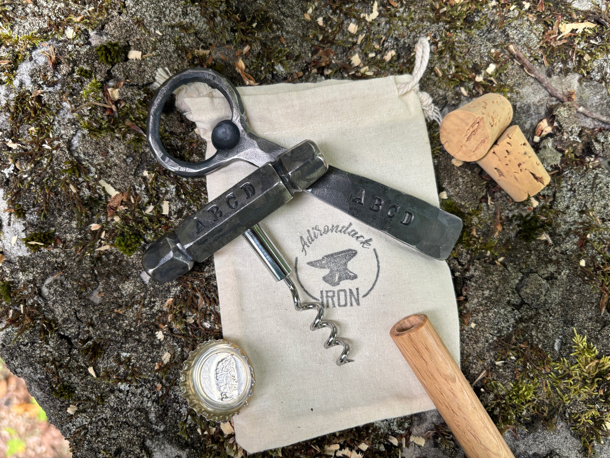 Custom set, bottle opener and corkscrew