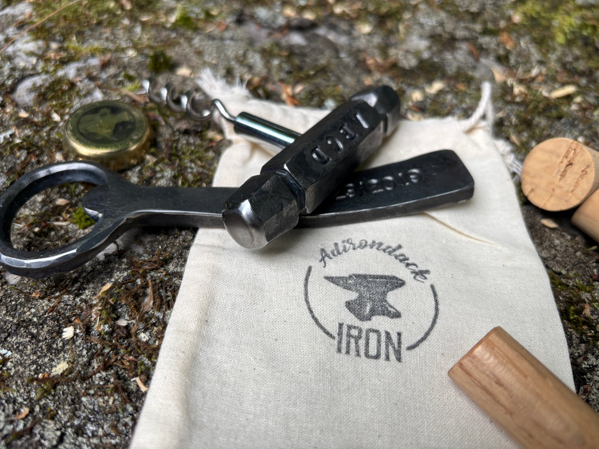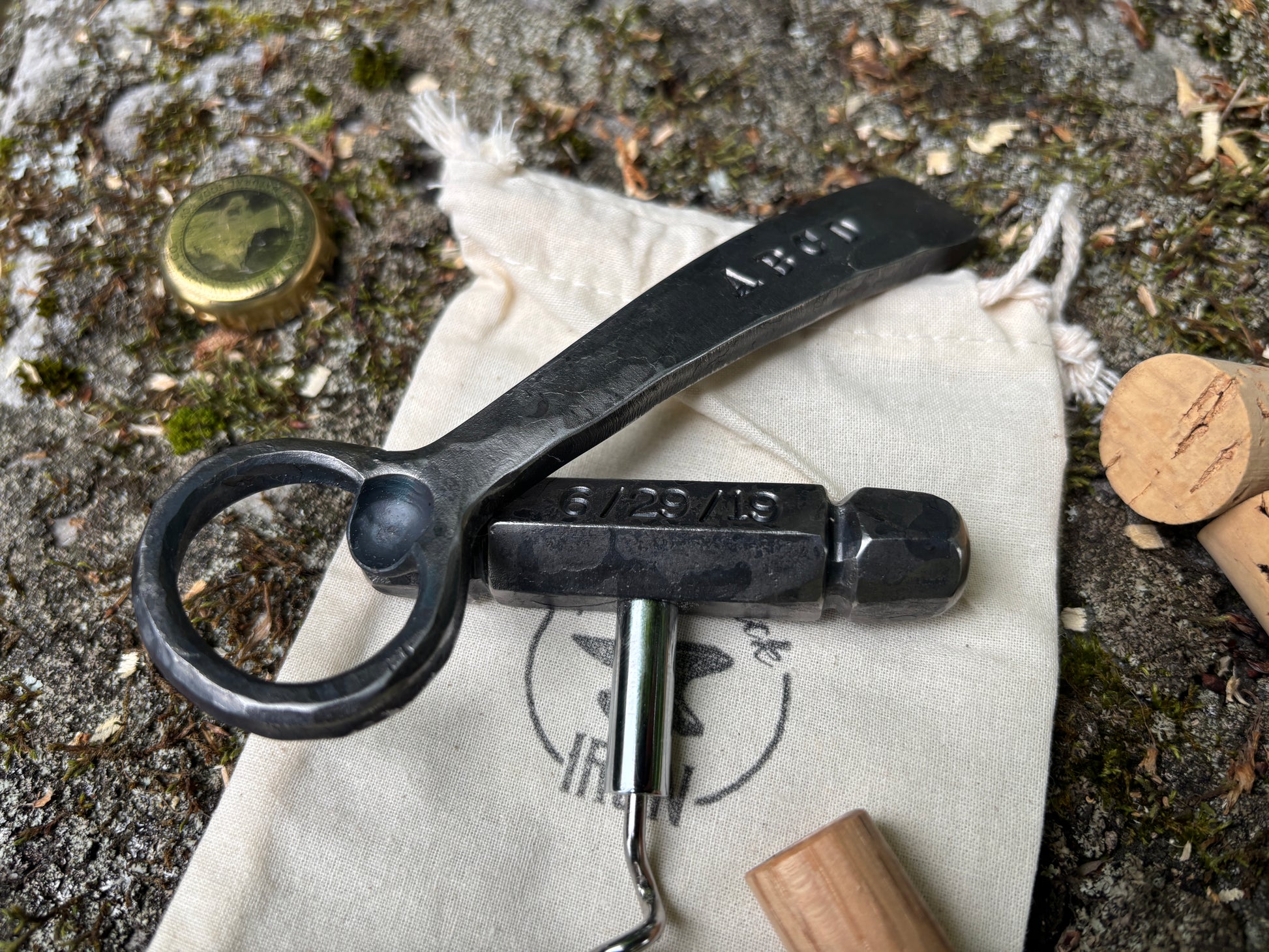 These blacksmith hand forged bar tools can be customized on two sides each with up to 8 characters, please see details below! I hand forged each item out of iron so each set is unique! They come in a gift bag with a wooden 'sheath' for the corkscrew.