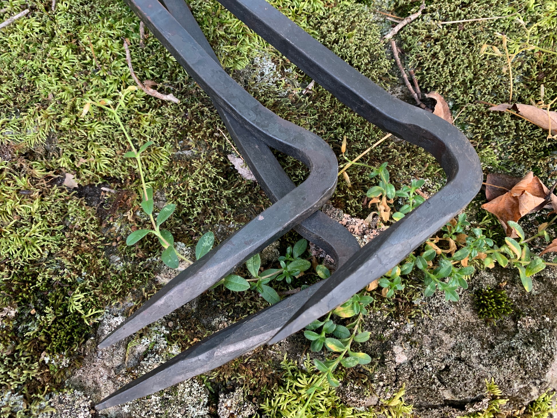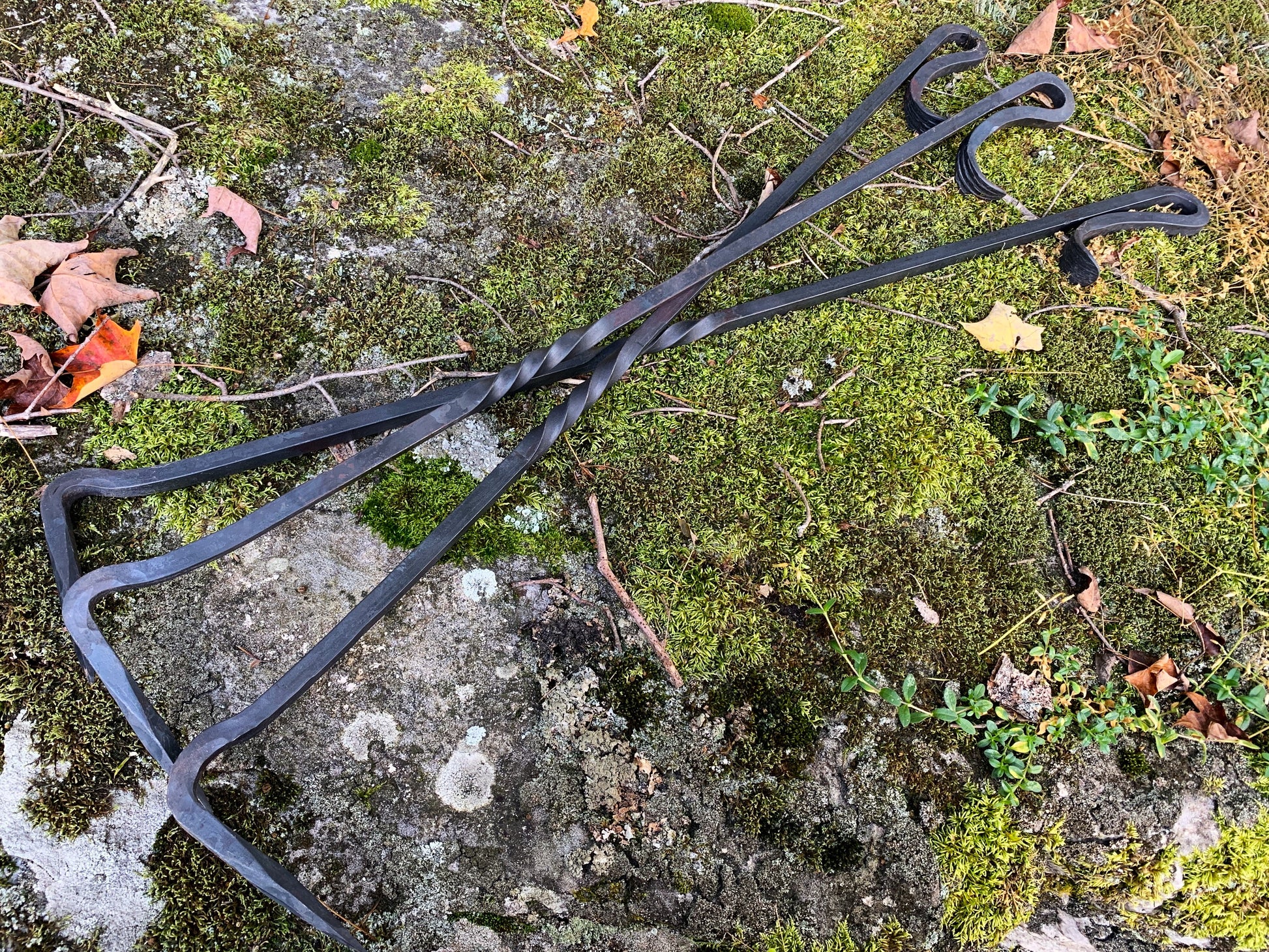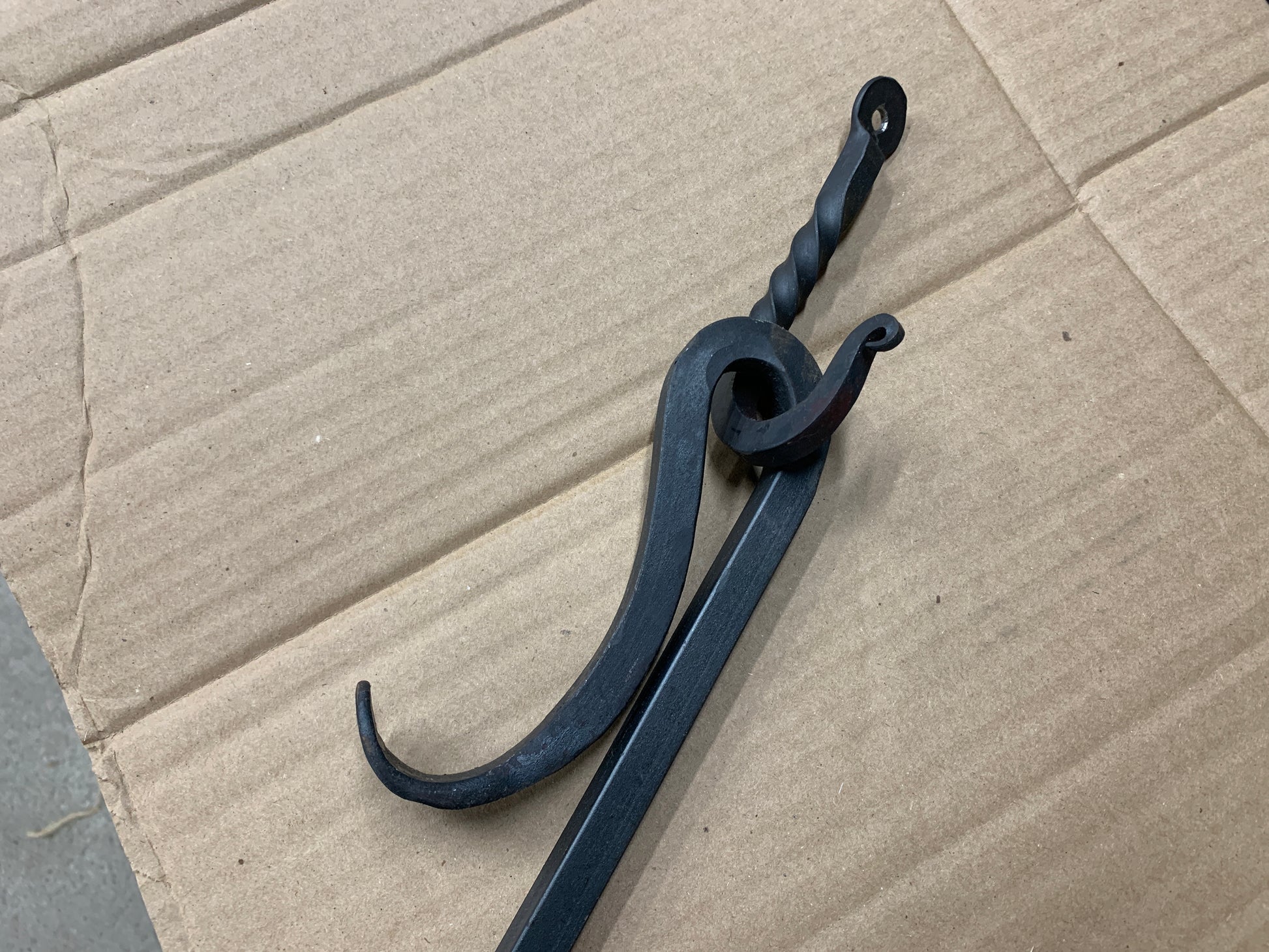 Each item is one of a kind and shows all the hammer marks that come along with being hand hammered. It is finished with a traditional coat of linseed oil. If stored outside, the finish will eventually begin to rust and patina, but this in no way interferes with the usefulness of this poker! It is easily remedied by storing it dry and occasionally reapplying more oil.