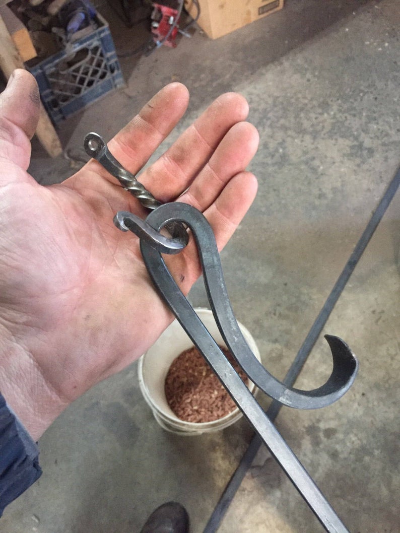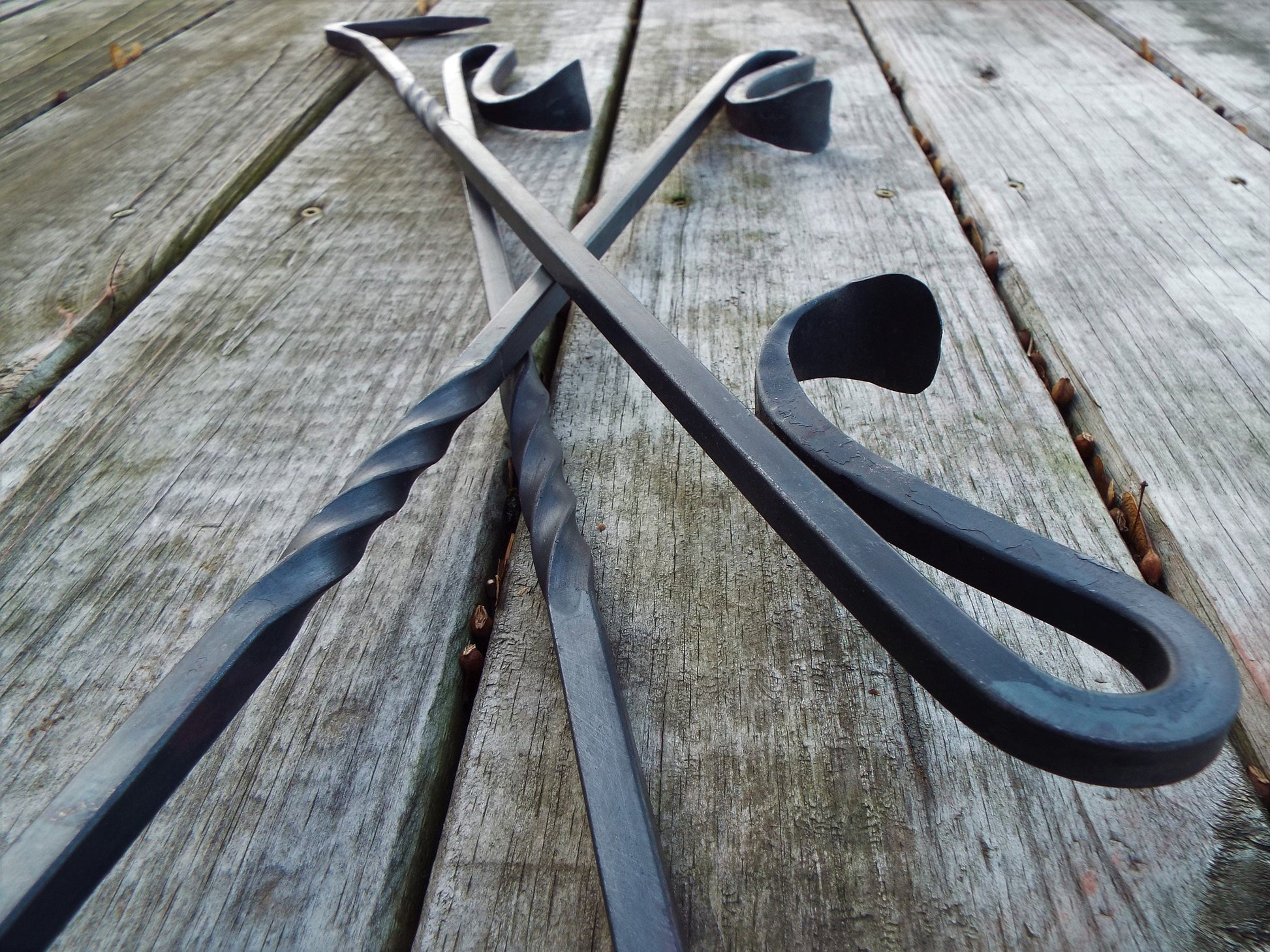 All the work that I do is with antique blacksmithing tools and almost without electricity. Each item is one of a kind and shows all the hammer marks that come along with being hand hammered. It is finished with a traditional coat of linseed oil. If stored outside, the finish will eventually begin to rust and patina, but this in no way interferes with the usefulness of this poker! It is easily remedied by storing it dry and occasionally reapplying more oil.